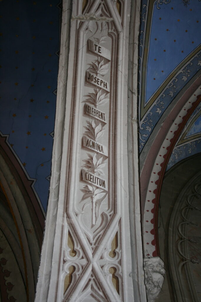 « Joseph, que les colonnes du ciel te célèbrent », et sur le pilier droit « que le cœur du Christ résonne avec toi »