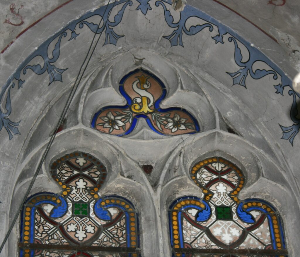 Le détail du sommet du vitrail confirme la dévotion de la chapelle à saint Joseph