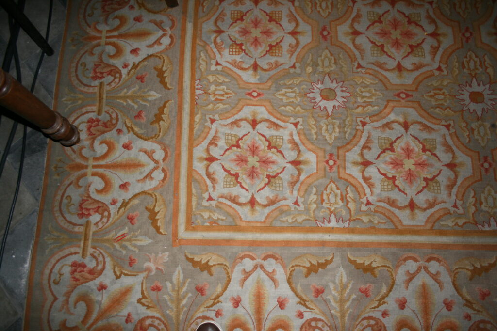 Au sol, ce tapis est sans doute le plus ancien existant encore dans l’église, puisqu’il figure déjà dans l’inventaire de 1906, établi suite à la loi de 1905 actant la séparation de l’Eglise et de l’Etat